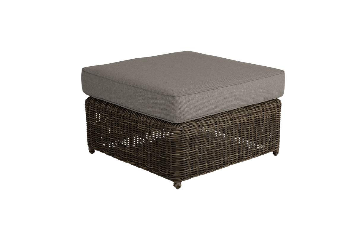 Glendonserien utökades 2022 med en matchande fotpall. Från säsongen2026 finns pallen även i en brun nyans med mellangrå dynor.Samma konstrotting och samma olefindynor som övriga delar.