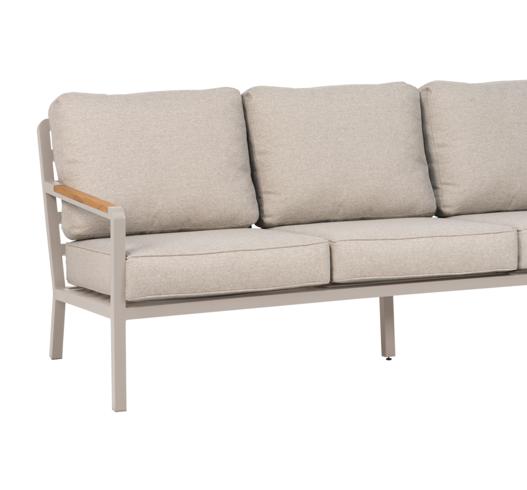 Nova är en modern loungeserie med ett stilrent och genomtänkt uttryck, inspirerad av den klassiska teakgruppen Zalango. Den djupa sitsen tillsammans med mjuka dynor med vattenavvisande TPU-liner ger hög och långvarig komfort samt praktisk användning utomhus. Den generösa lutningen bidrar till en avslappnad loungkänsla, medan detaljer i massiv teak på armstöden tillför värme och skapar en elegant kontrast mot den slimmade aluminiumramen.
